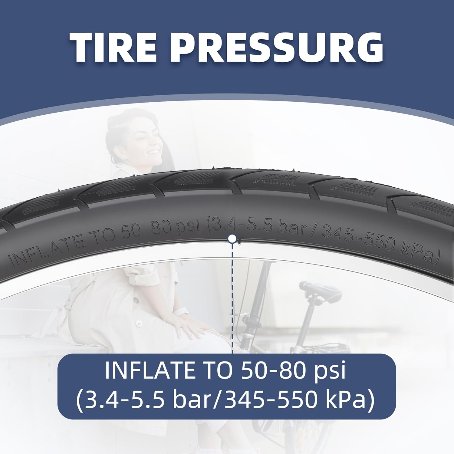 - Optimal Pressure Range 50–80 PSI – High-volume 80 psi max rating (3.4–5.5 bar / 345–550 kPa) supports heavier riders and cargo loads while the 50 psi lower limit offers extra cushion on rough paths; sidewall markings show clear inflation guidance for hassle-free maintenance.