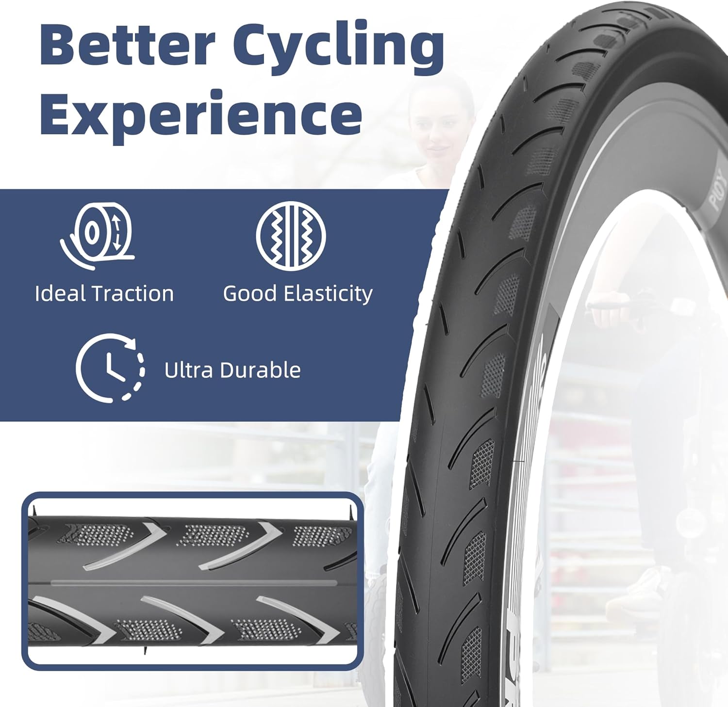 - SmoothTread Performance Rubber – Engineered with an ultra-durable, wear-resistant compound that stays comfortable on long urban rides yet tough enough for winding asphalt paths; the 0° ideal traction layer gives riders a noticeably smoother cycling experience and noticeably longer life than stock tires.