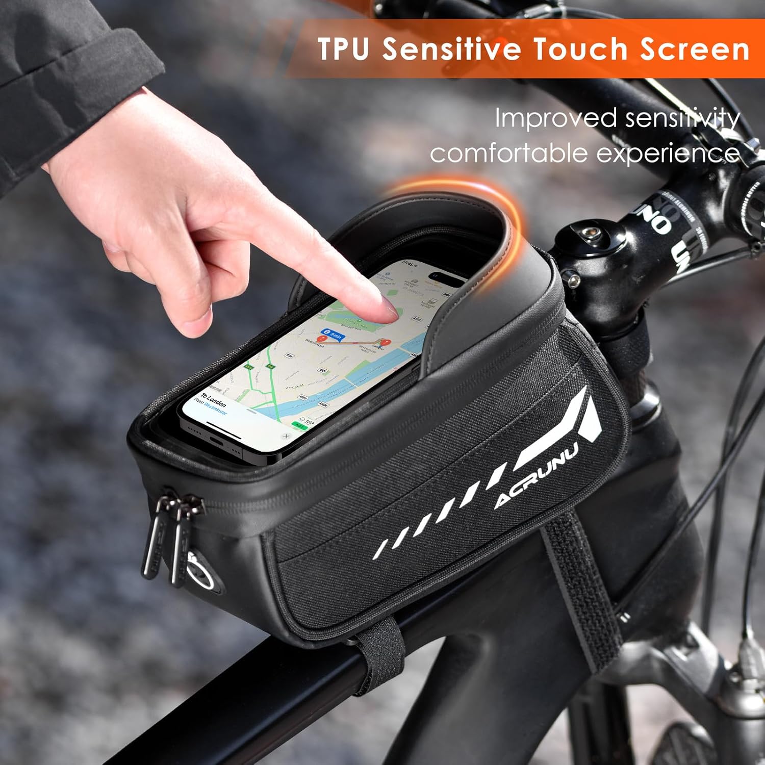 - HIGH-SENSITIVE TOUCH SCREEN: The bike phone bag has a highly sensitive TPU film window which can help you use your cellphone easily while riding, great way to see your activity while using maps on a ride.