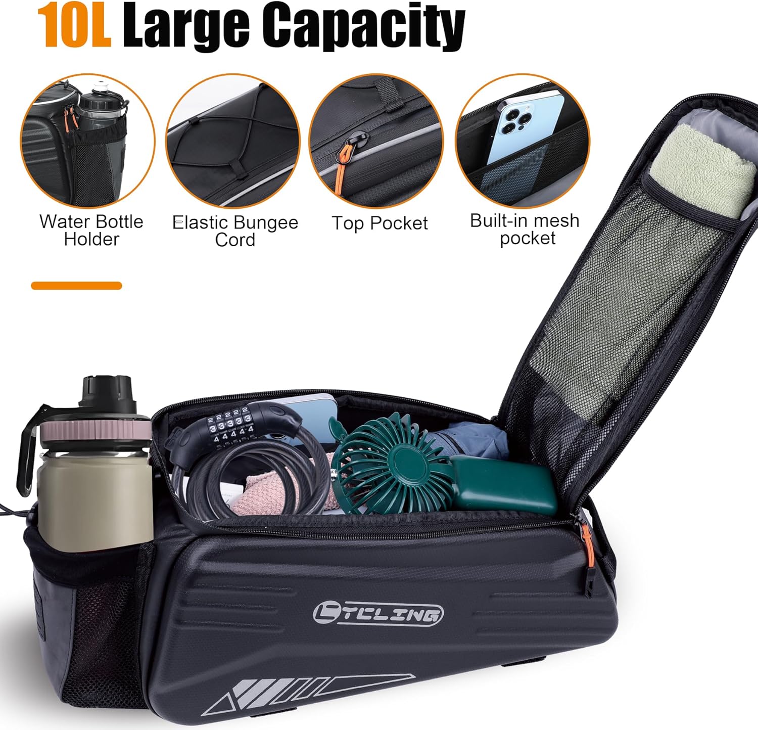 Premium EVA Hard-Shell Construction: Built from durable EVA material, this bike rack bag resists deformation and wear, providing superior protection for your belongings and ensuring long-lasting performance.