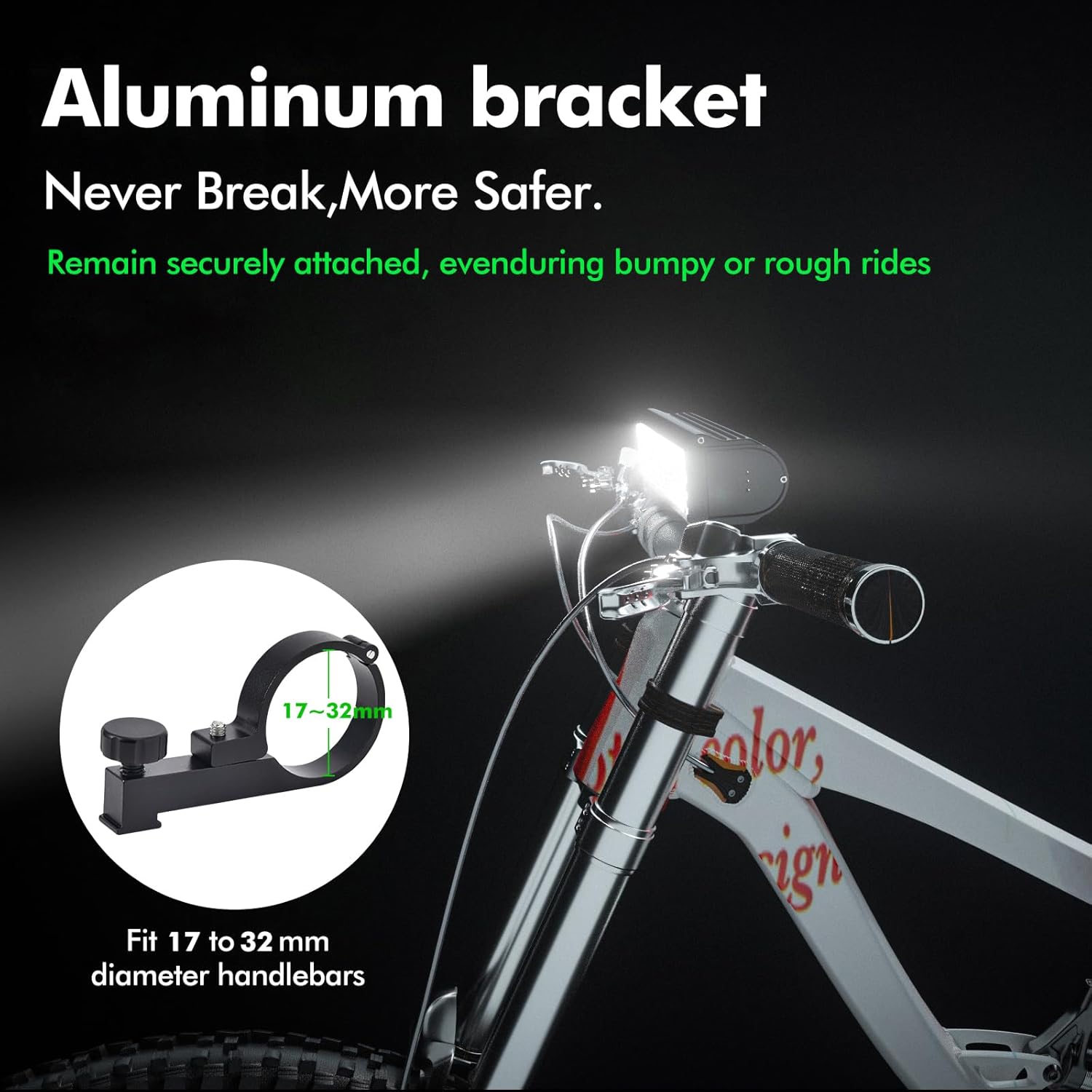 • 【Super Bright Bicycle Light with 9500 Lumen】The Latest Version of 2024, 5 light and 9500 Lumen bright. The bicycle front light allows you to see further & clearer when night riding at high speeds over 30km/h