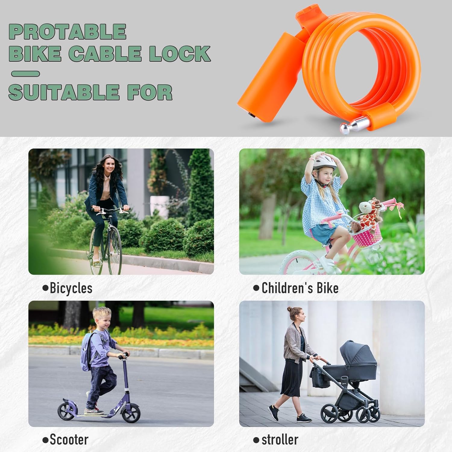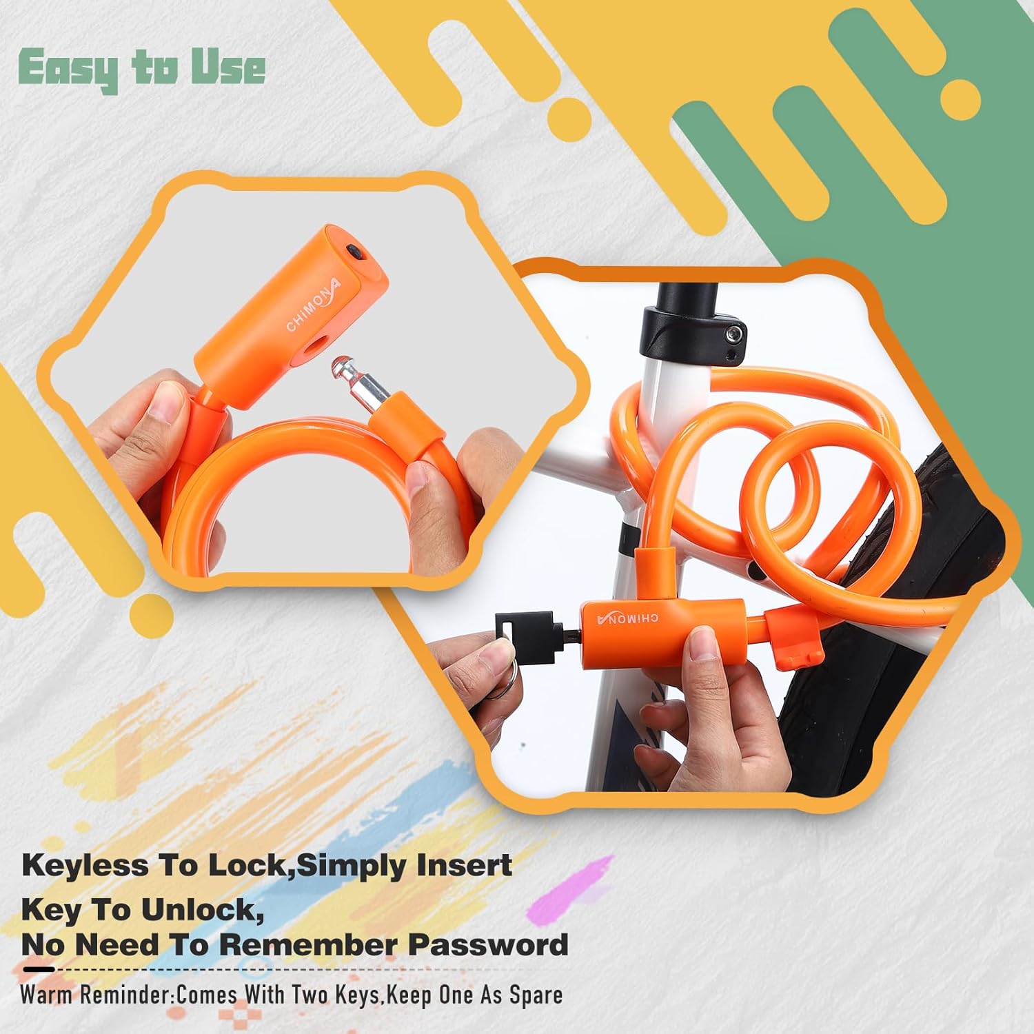 - MULTI PURPOSE BICYCLE LOCK CABLE : About 4 feet long 4.5in thick. Ideal for bikes, scooters, gates & fences, grills & lawnmowers, sports equipment, tool boxes & ladders. Four simple color for choose : orange, blue, pink & green can match most styles. This bike lock is suitable for basic security and anti-theft. Do not leave your bicycle locked outside for a long time