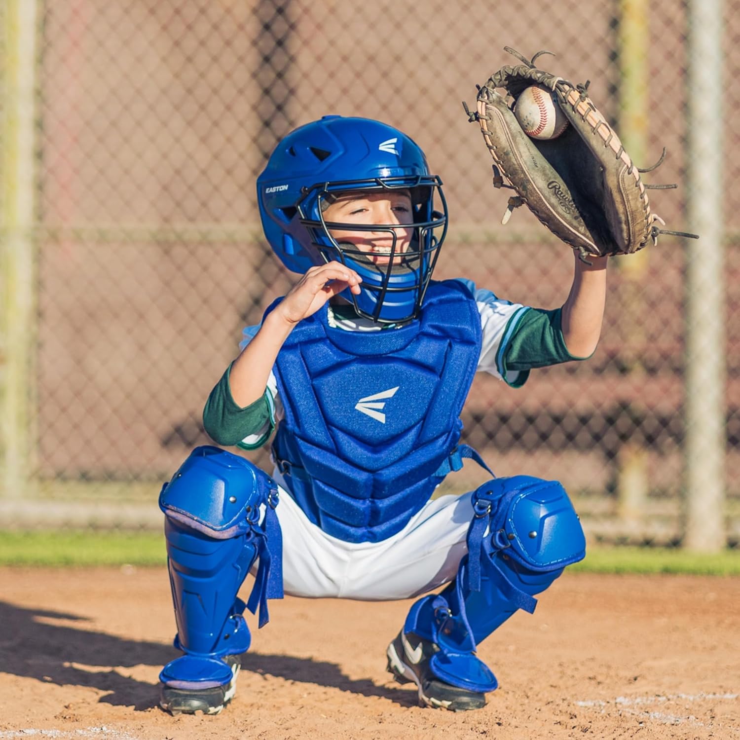 - ARTICULATED LEG GUARDS | Contoured, flexible leg guards move naturally with the catcher’s stance for comfort and wrap-around protection. Leg Guards Size: 13″