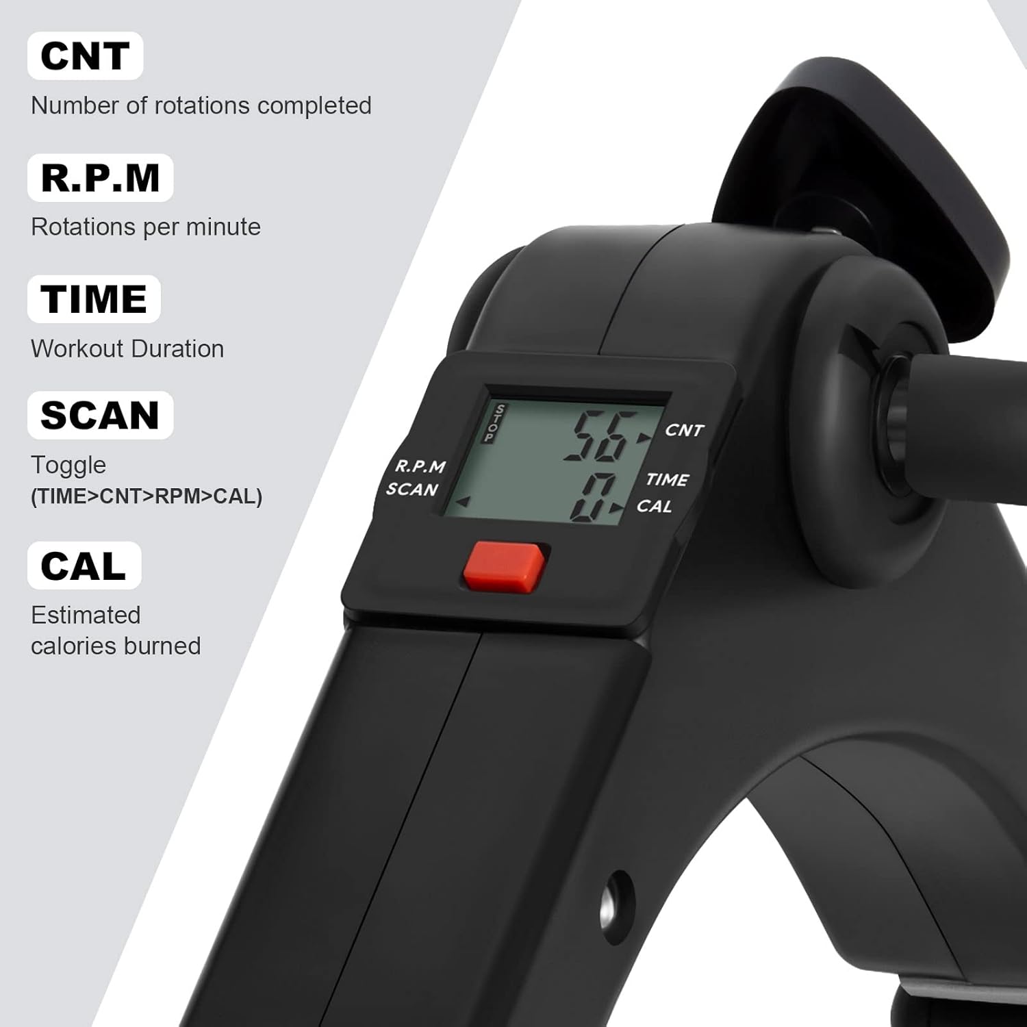 - 【LCD Screen Display】: The under desk bike pedal exerciser with removable multifunction LCD monitor display, It is very clear and visible, including RPM (Rotation per minute), counting, exercise time and calories burned.