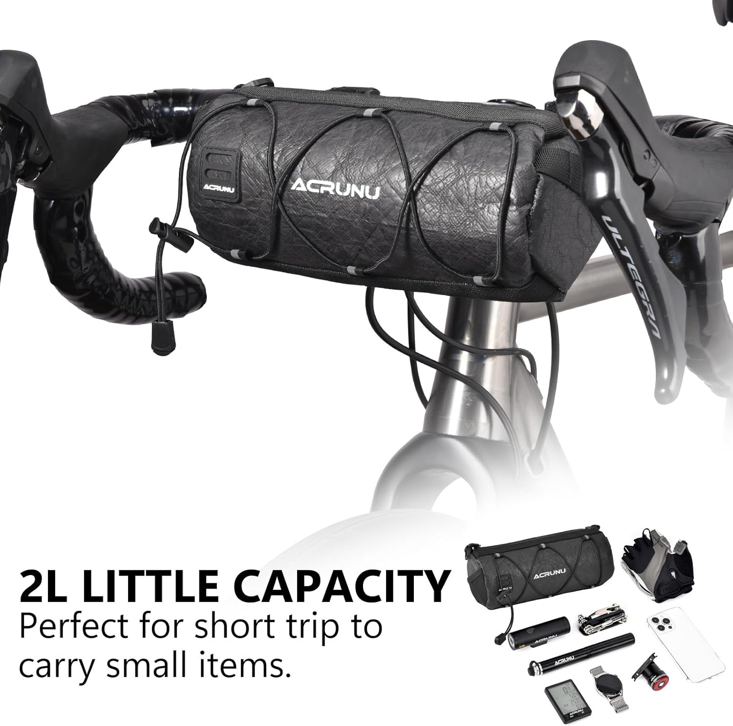 ★SMALL&LIGHTWEIGHT: This is a little handlebar bag, with about 2L capacity, and could hold phones, keys, wallet, sunglasses, and a few other small items for daily riding essentials.