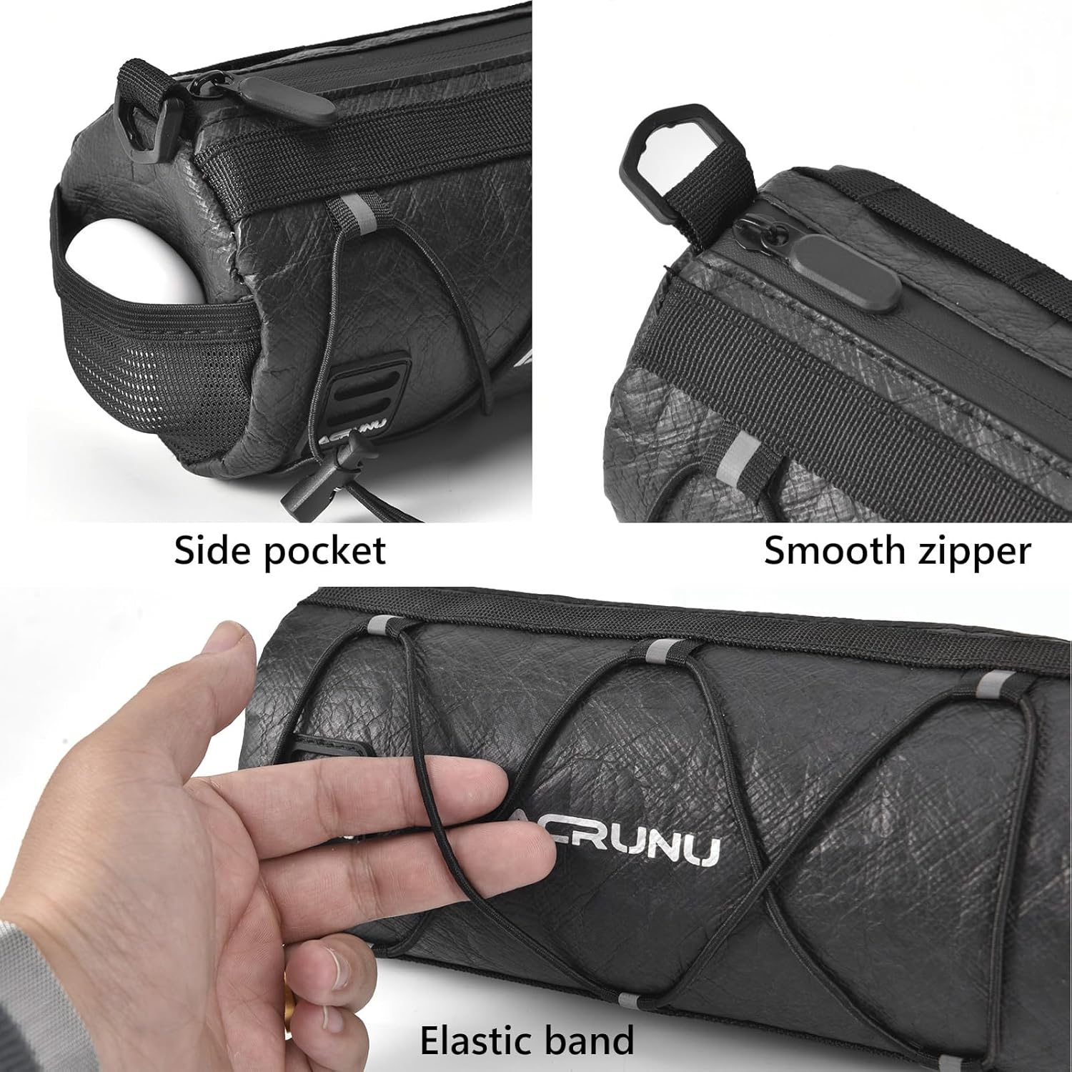 ★Tyvek Waterproof Material: The bike handlebar bag is extremely water resistant. Strong against rain, mud, and all kinds of harsh conditions with Tyvek paper fabric and water-repellent coated zippers. You can rest assured to put your phone inside on rainy days.