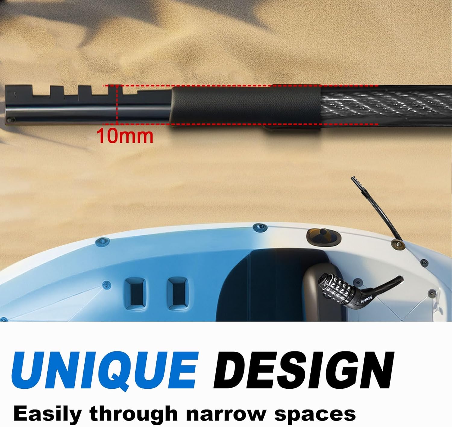 - This long cable lock fits easily through the narrow scupper holes on the kayaks, paddleboard, but most locks won’t fit, and can pass through the spokes gap of the scooter, compatible with all scooters
