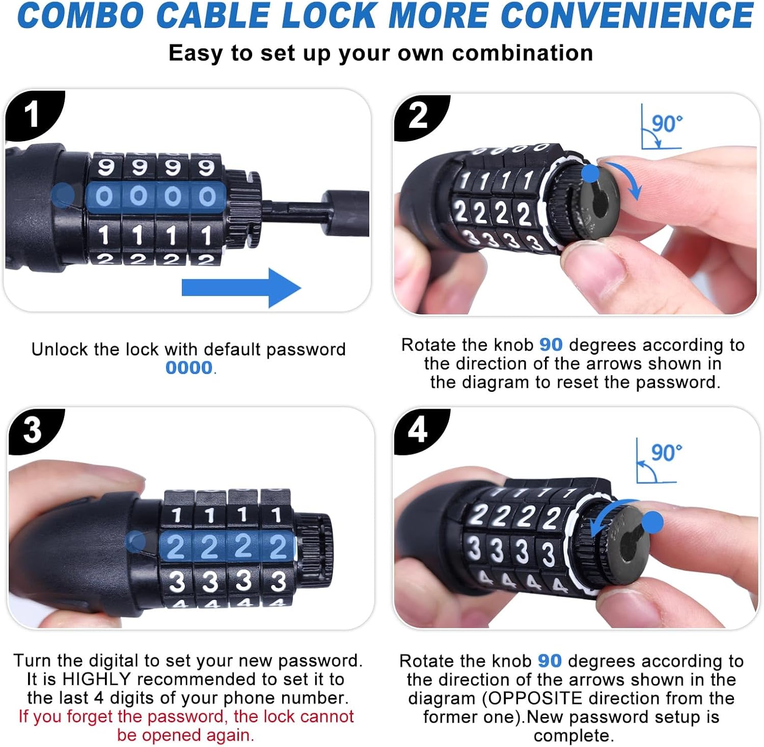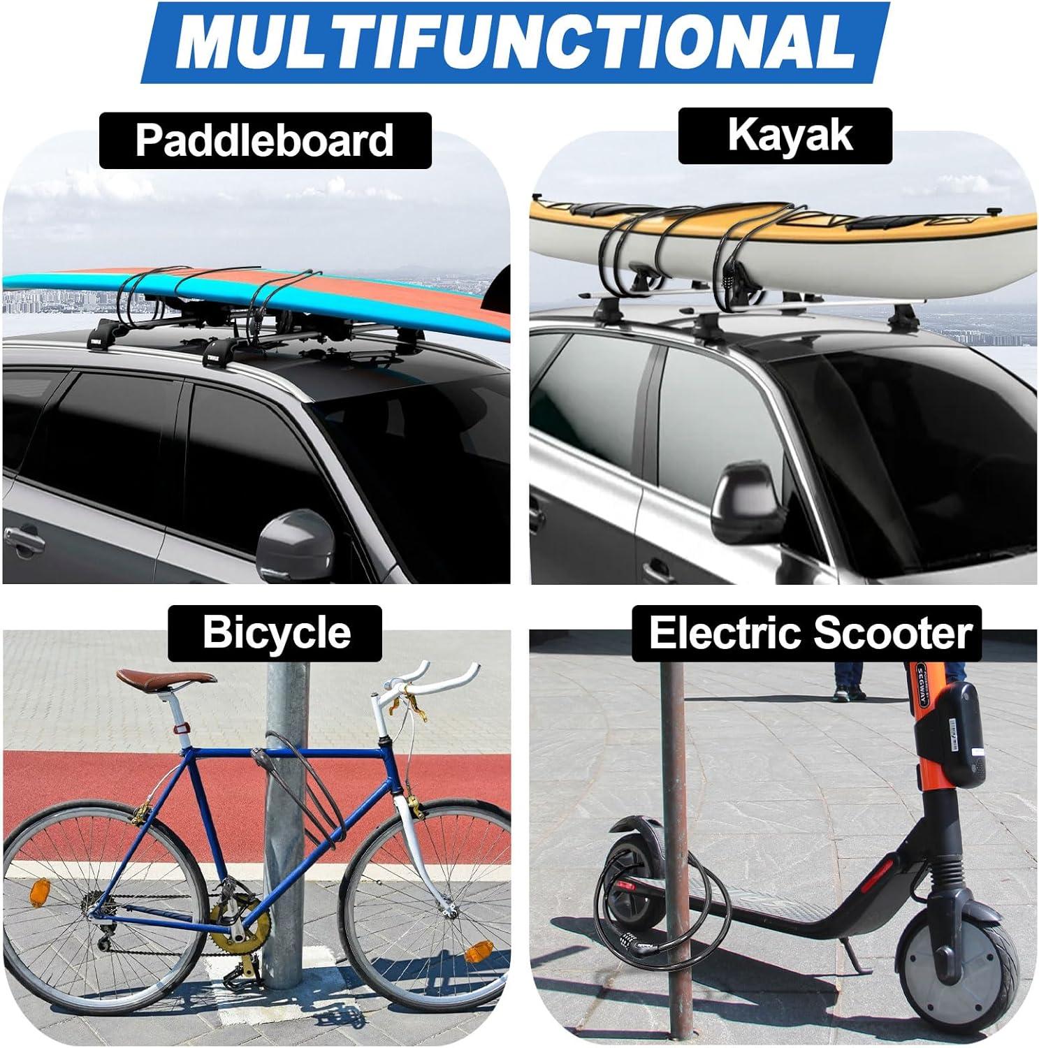 Extra long bike lock can secure a wide range of items such as kayaks, paddle boards, jet skis, surfboard, outdoor equipment, grills, camping equipment, generators, lawn mowers, canoes, golf carts, bicycles, electric scooters, scooter, beach chair, surge protector, trolling motor, ladder, fences, patio furniture, backyard gate, etc.