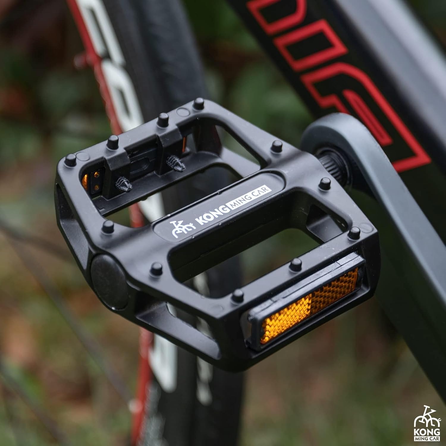 - 【Ride Safely with Reflector】 — The Bike pedal have a perfectly-sized body that strikes an inimitable balance between grip, support and size. With 11 pins per side and a concave shape, and The bike pedals have a reflector on the sides ,the reflectors are perfectly combined with the black pedals bike and provide a cool look that makes you more visible and makes your night ride safer!
