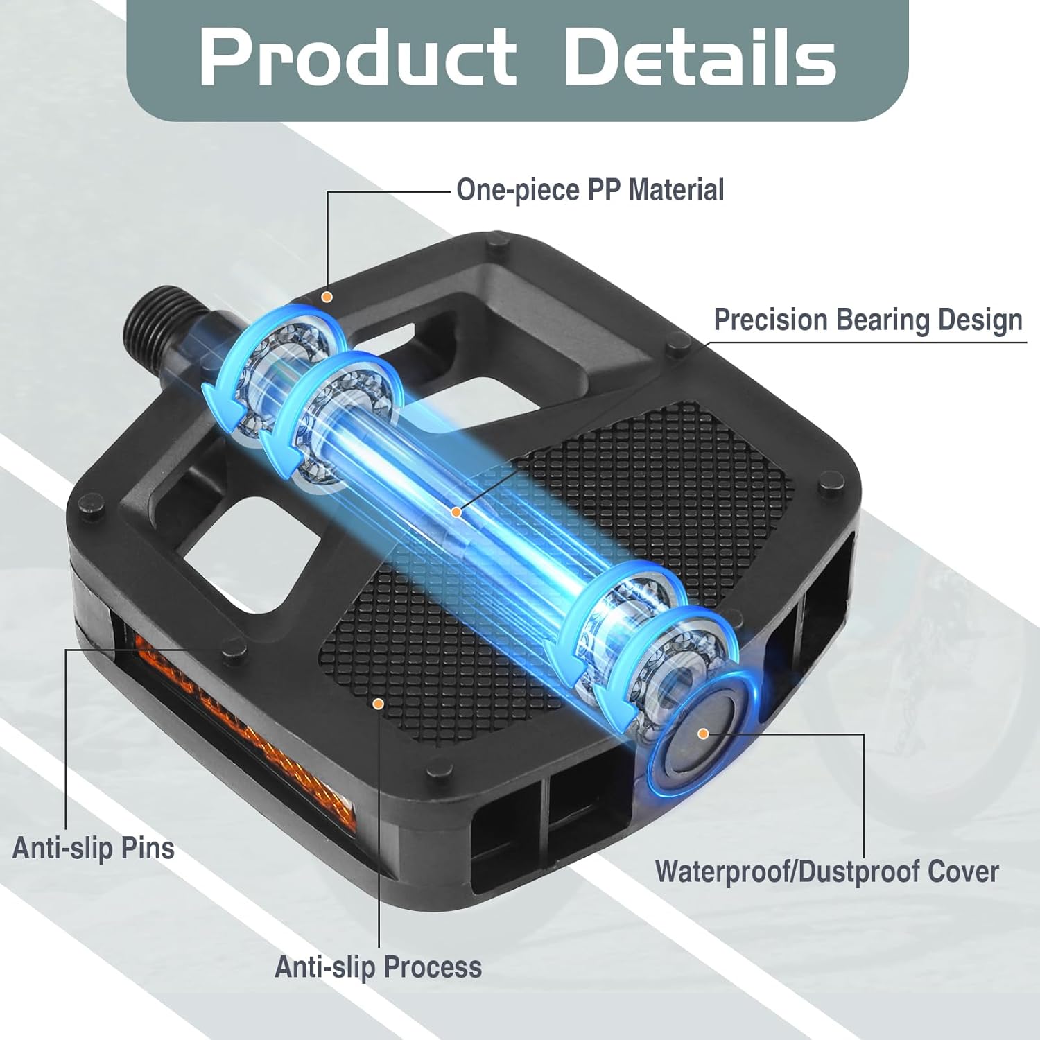 - Excellent Enhanced Grip: Conquer various terrains with confidence, as the nonskid platforms on these pedals provide enhanced traction for a consistently stable and secure ride.making it easier for you to ride long distances, allowing you to easily enjoy the fun of riding.