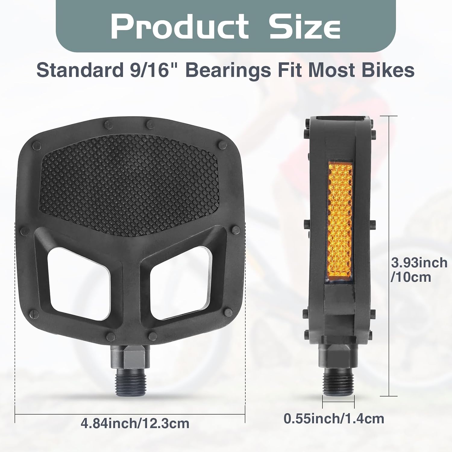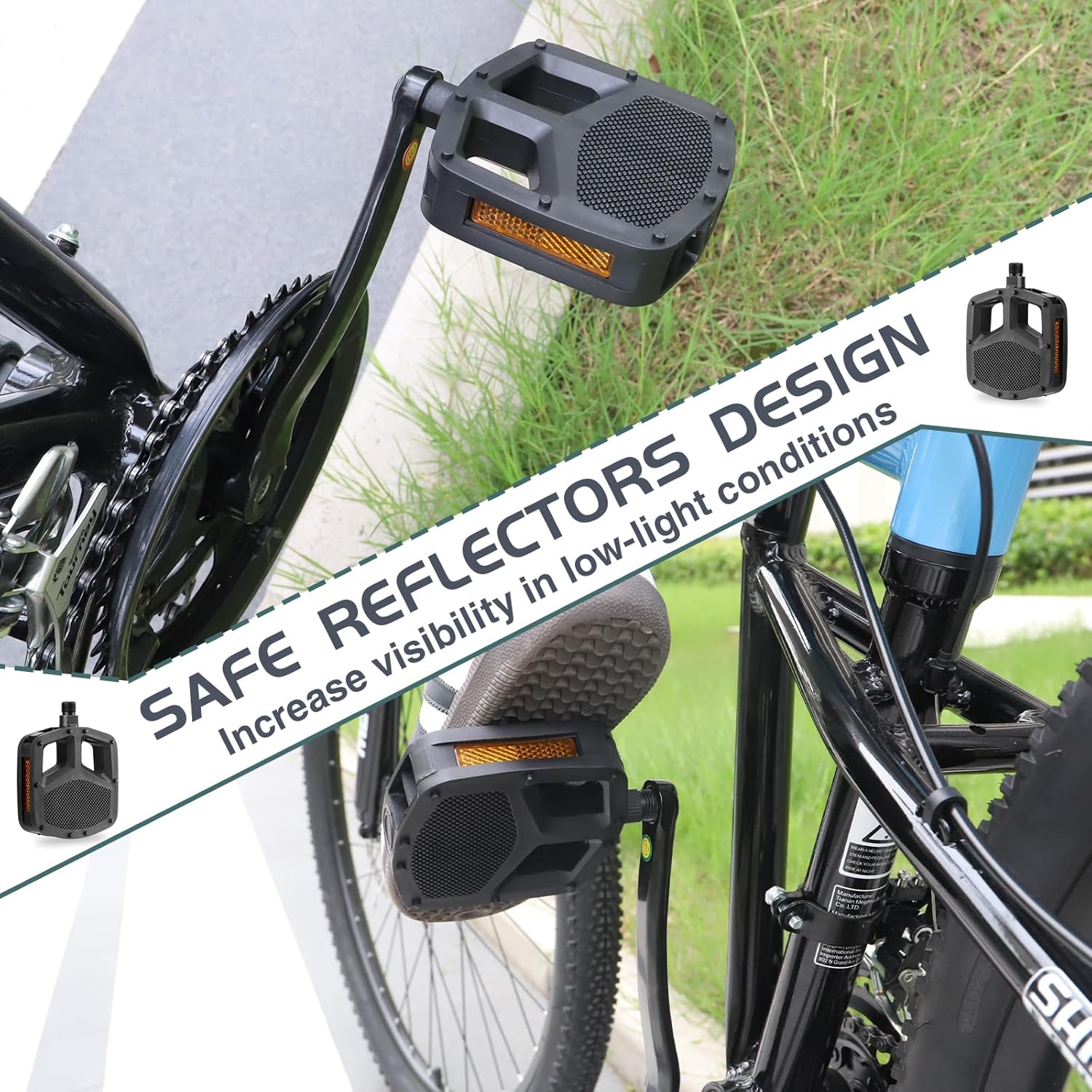 - High Visibility Reflectors: The mountain bike pedals are made with reflectors to ensure safety and visibility even in low sunlight, providing a safe and secure riding experience for you.