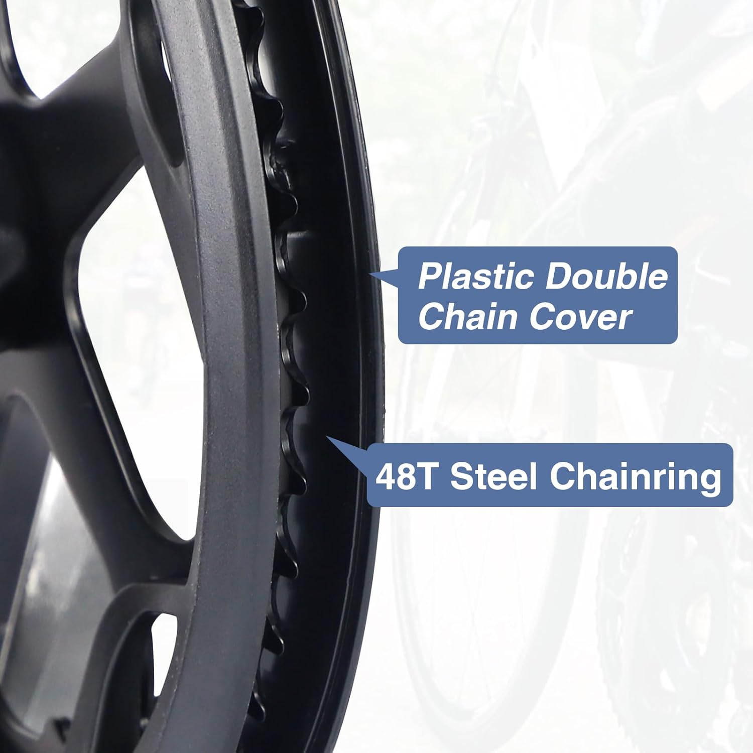 - Durable for long lasting use:The bike crankset is made of Steel,prowheel crank arm – aluminum alloy,Plastic Double Wall Chain Cover,makes it durable for long lasting use.Suitable for mountain bikes, commuter bikes,E-bikes,etc.