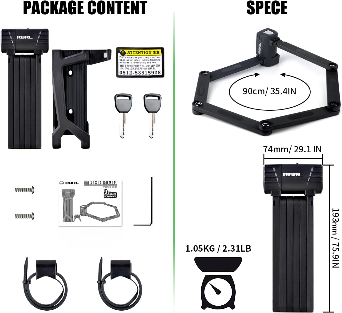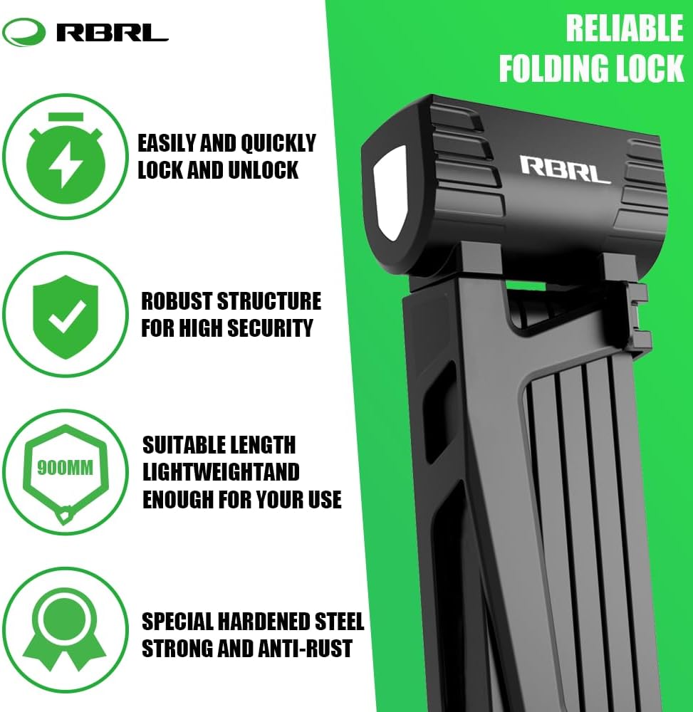 • 【MULTI-PURPOSE】: RBRL folding lock can be used for bicycles, electric bikes, scooters and motorcycles. This alloy structure steel bike lock is also perfect for locking up items around the house, the garage, the construction site or the farm, like generator, gates & fences, grills & lawnmowers, sports equipment, tool boxes & ladders, stroller and many more