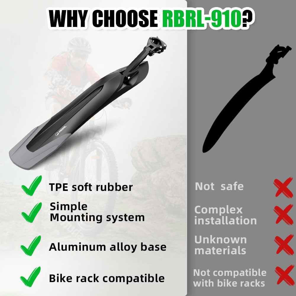 RBRL rear bicycle mudguard is made of soft TPE rubber with high toughness. The shock absorption design does not break in the event of a collision.