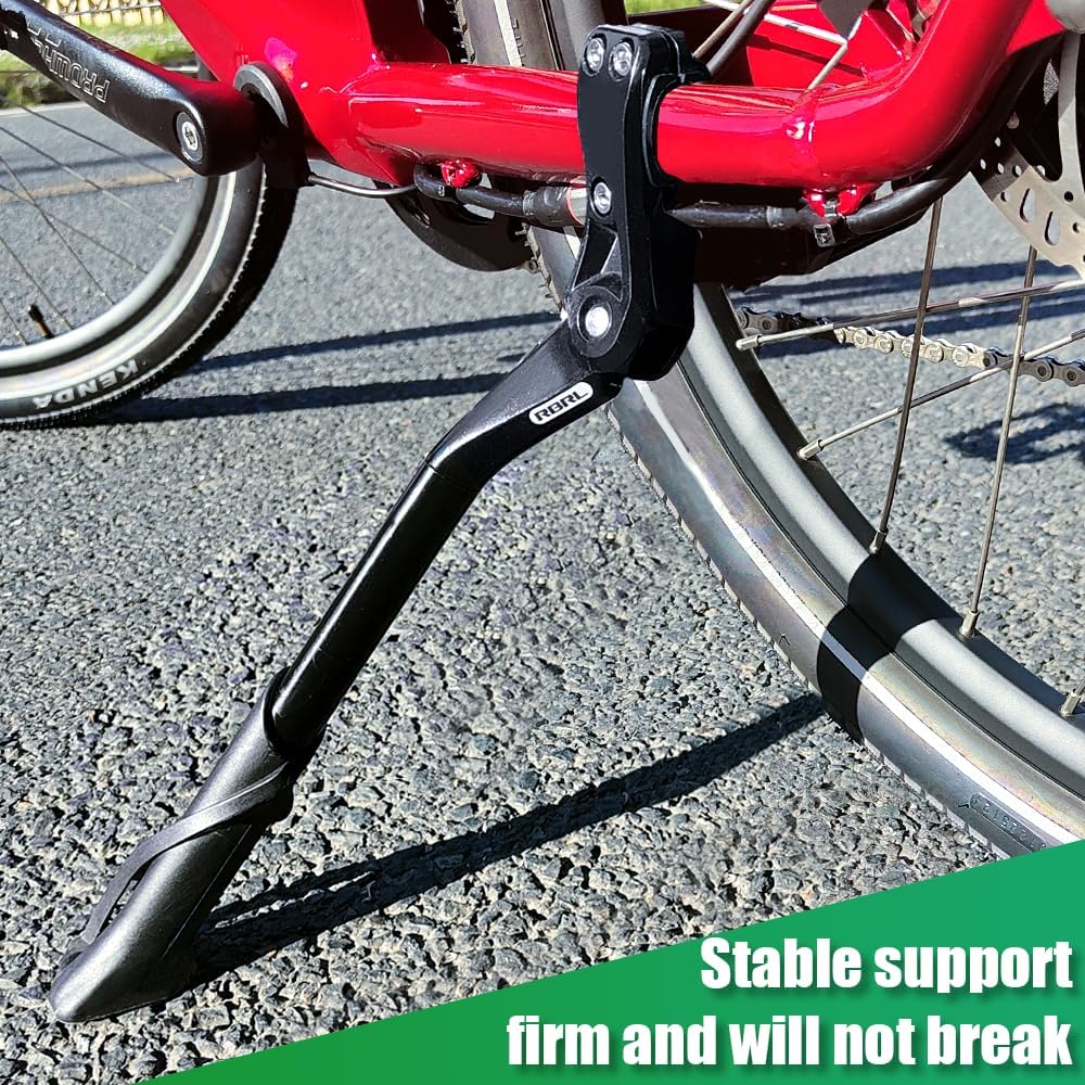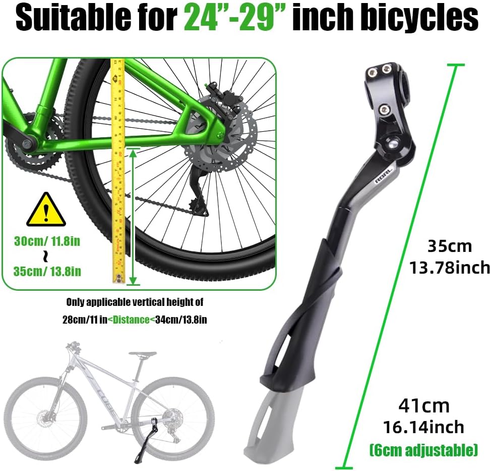 【Wide Compatibility】RBRL bike kickstand fits for 24″-29″ wheel size mountain bike, road bike and especially durable for electric bike. Rear bicycle kickstand fits on rectangular and oval tube chain stays. Please check the size before purchasing