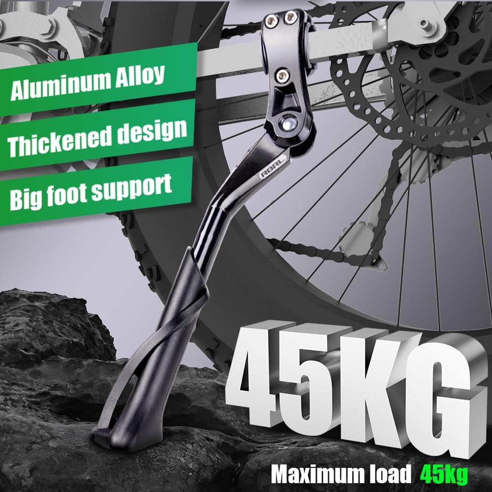 【Widen Anti-slip Support Design】The bike kickstand is equipped with enlarged, widened and thickened nylon feet, which is with anti-slip pattern. This design aims to prevent slipping on wet ground and sinking into mud