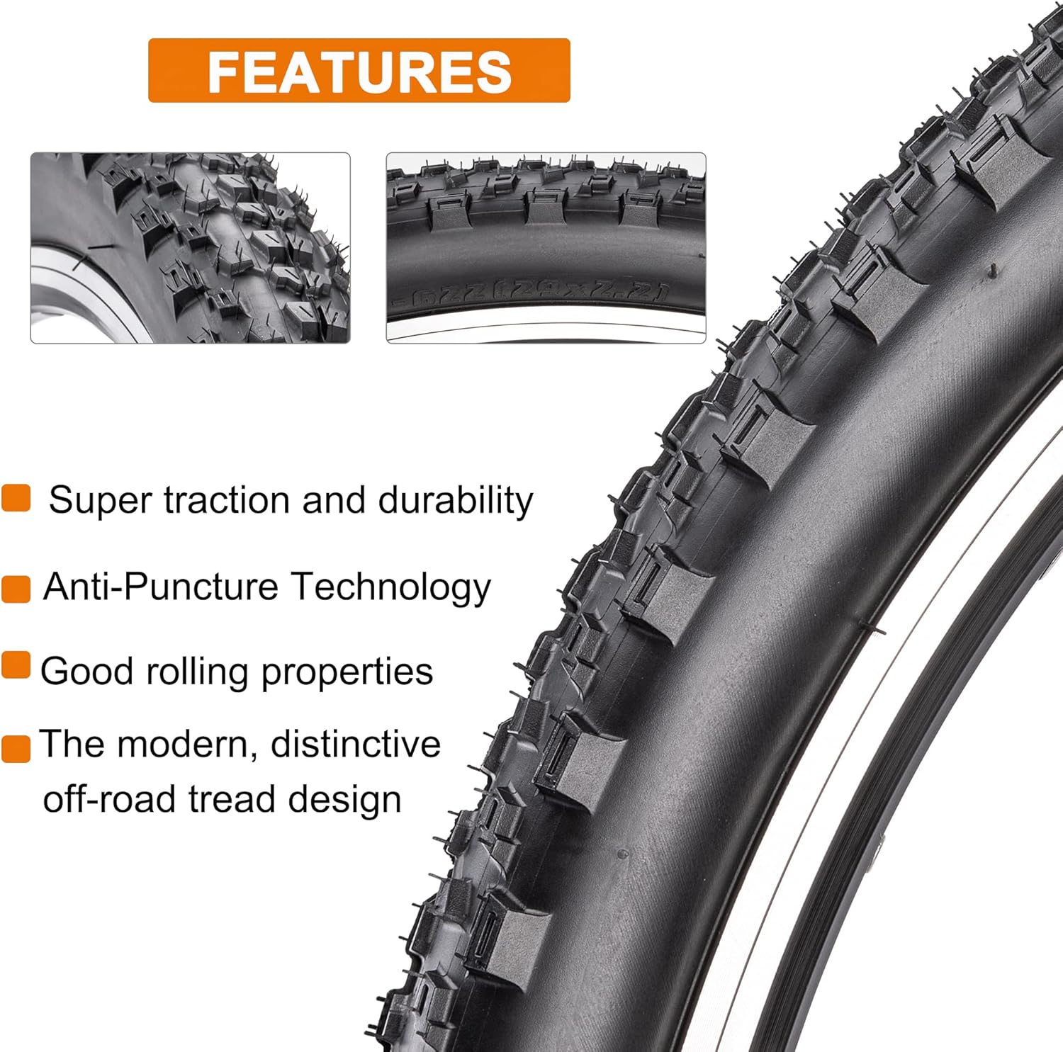 - Kolay Kurulum: Kolay kurulumlu Yedek Bisiklet Lastiğimizle zamandan ve emekten tasarruf edin. Çeşitli boyut ve renk seçenekleri (siyah ve retro renklerde 26″x1,95″, 27,5″x2,1″, 27,5″x2,2″ ve 29″x2,2″) ve 35-65 psi PSI aralığıyla bisikletiniz için mükemmel uyumu kolayca bulabilirsiniz.