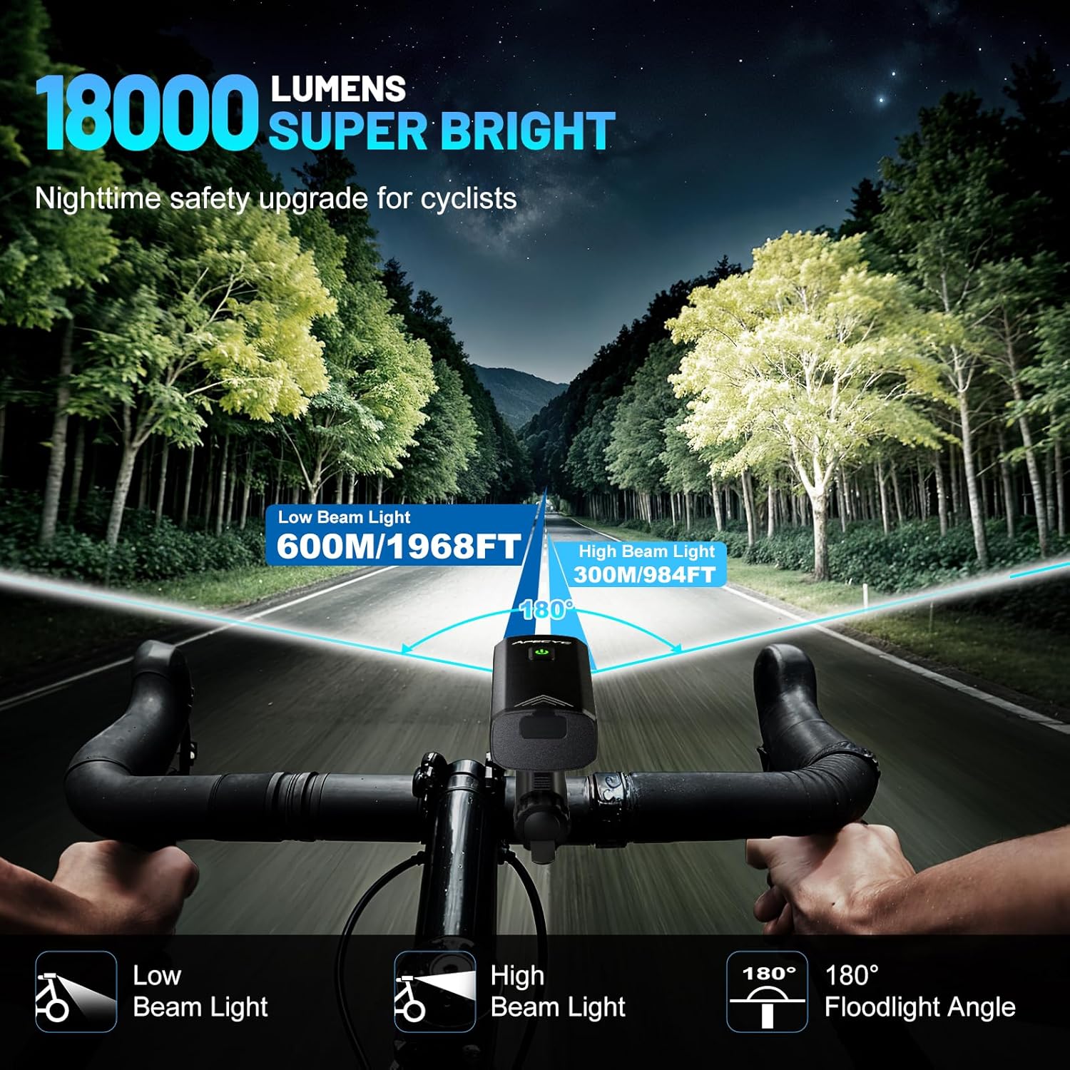 - Super Bright Headlight: Feature 6 high-power LED, delivering blinding light with 180° wide angle for full-scenario coverage, maximizing side visibility and eliminates dark zones while riding, improving visibility in urban and trail riding
