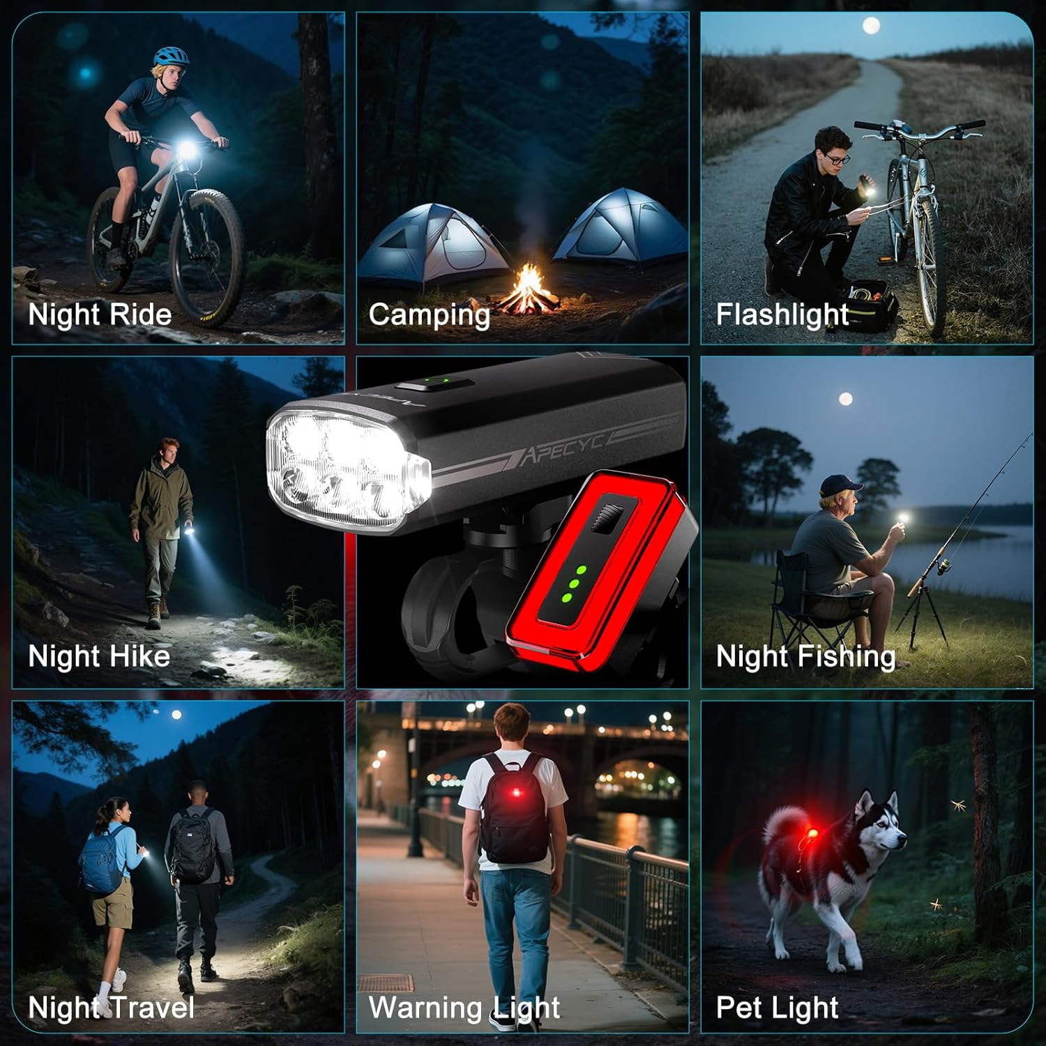 - All-Weather Durability: Made of aluminum alloy housing, waterproof and shockproof design withstands heavy rain and rough terrain, making it a reliable bicycle light set for any adventure