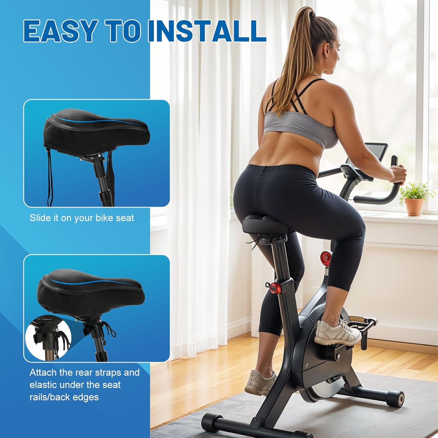 Durable & Non-Slip Grip: Reinforced stitching and anti-slip silicone strips keep the cushion firmly in place, whether you’re cycling indoors or on rough terrain for long rides. Fit for mountain, Peloton, or stationary bikes. Ideal for cyclists, fitness enthusiasts, and anyone looking to enhance their riding experience